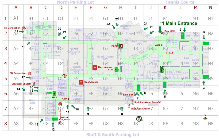 Fire evacuation planning, medical equipment, emergency shutoff locations.